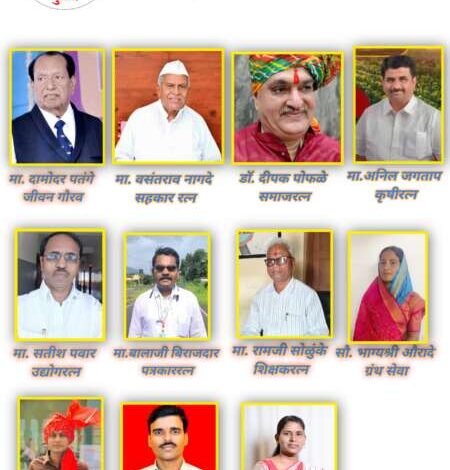 डॉ. दामोदर पतंगे – जीवन गौरव, वसंतराव नागदे – सहकाररत्न, डॉ. दीपक पोफळे – समाजरत्न, अनिल जगताप – कृषीरत्न; विविध क्षेत्रातील मान्यवरांचा सन्मान