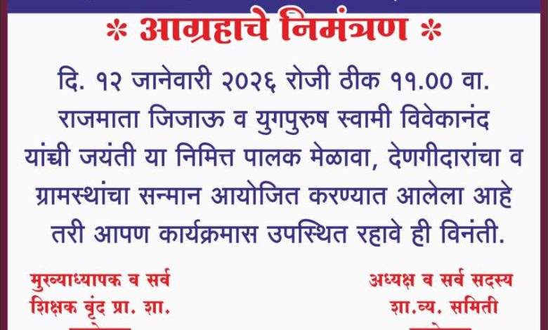 या कार्यक्रमास गावातील पालक, ग्रामस्थ, शिक्षणप्रेमी नागरिकांनी मोठ्या संख्येने उपस्थित राहावे, असे आवाहन शाळेचे मुख्याध्यापक व सर्व शिक्षकवृंद तसेच शालेय व्यवस्थापन समितीचे अध्यक्ष व सर्व सदस्य यांनी केले आहे.