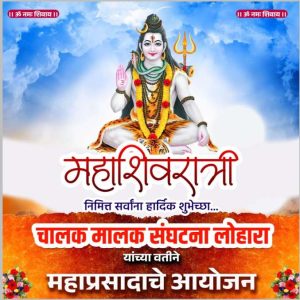लोहारा : महाशिवरात्रीच्या पावन पर्वावर लोहारा शहरातील शंभू महादेव मंदिर येथे दिनांक १५ फेब्रुवारी रोजी शिवभक्तांसाठी फराळाचे आयोजन करण्यात आले आहे.